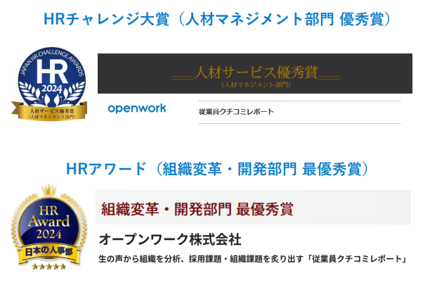 「OpenWork」に掲載されたクチコミをAIで分析・スコア化し、企業の組織風土を可視化する「従業員クチコミレポート」の提供を2024年より開始。ローンチ年に、2つのHR関連の賞を受賞。個人としてはモチベーションクラウド以来、自身が携わったプロダクトで2つめのHR関連の賞を受賞。