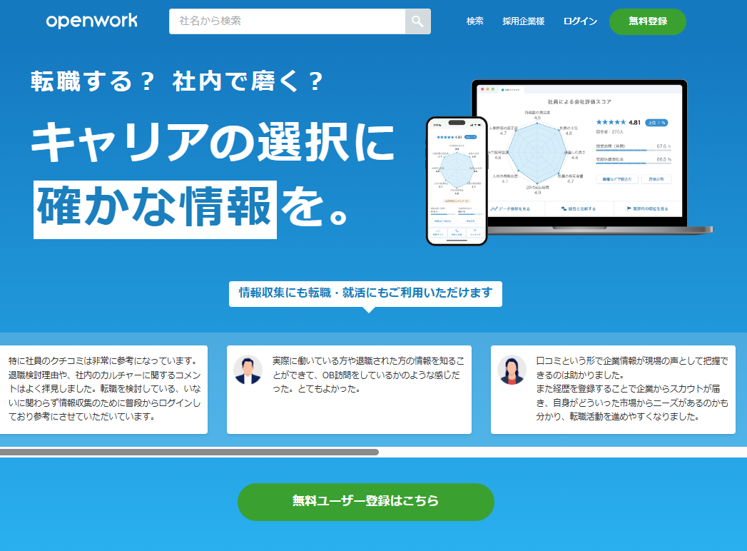 日本最大級の社員クチコミをベースとした就職・転職情報プラットフォーム。2022年9月末時点でユーザー数は520万人、クチコミ数は1,400万件を突破。